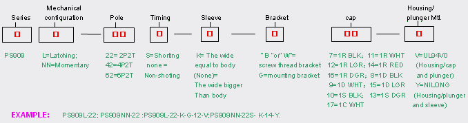 Operating Force: 2 Pole:230±50gf; 4 Pole:280±50gf; 6 Pole:380±50gf